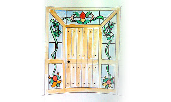 Diese Haustür wurde in Verbindung mit dekorativen Glasfenstern gefertigt, die im Kontrast zur massiven Holztür stehen. Farbige Blüten schmücken das Fensterglas, das passend zur Tür in Massivholzrahmen aus Eiche gefasst ist. Die nächste Abbildung zeigt das exklusive Design einer Tür, die in Akazienholz und Nussbaum angefertigt wurde.