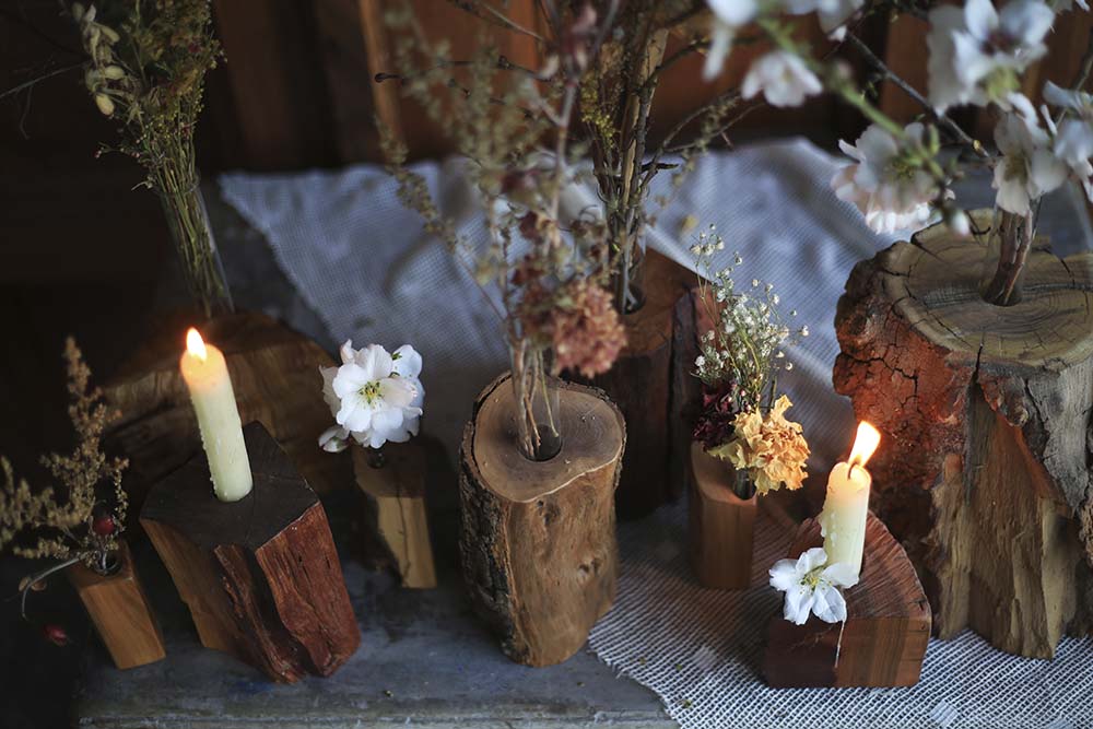Ikebana flower vases are filigree, aesthetic wooden vases - Unique with a long history Miniature artworks of nature, handmade from exotic, often hundreds of years old woods such as olive, orange, acacia, eucalyptus and almond wood. Organic surface treatment with shellac and wax.