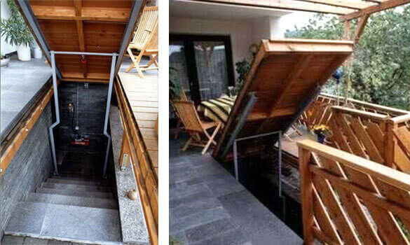 In this design with a raised terrace, we were able to solve a seemingly insurmountable problem: the lady of the house wanted to expand the terrace in front of the door; her husband on the other hand wanted to keep the basement staircase that is located in this area. Due to the elevated terrace, which was built with a hydraulic swing-up bottom element in the staircase area, both requests were united. Realization in larch wood.